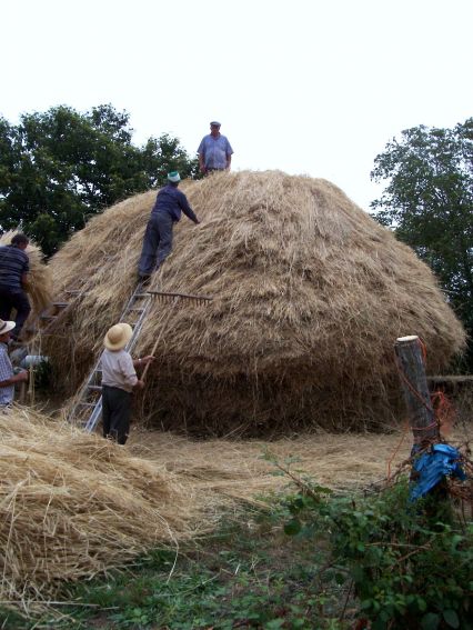 Os mais jovenes collían a palla de mellor calidade que habian seleccionado previamente as mulleres e se entregábana ao encargado de atar as riestras para facer o cuelmo, que era gardado no celeiro para techar mais adiante, A palla que non valía para techar sacábase á portillera da era, onde atábase con "biortas", que son unha especie de corda para atar pero hachas coa mesma palla e así facíanse as "mañizas", que levaban ao celeiro os máis jovenes.A chegada das máquinas malladoras, moito máis rápidas e cómodas, foi a c