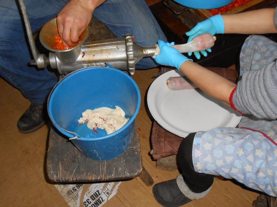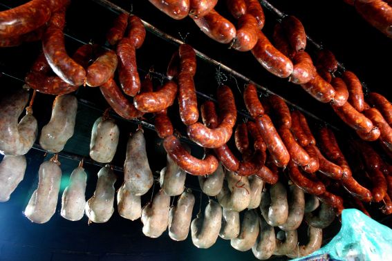 Soon they are hung to the smoke in the firewood kitchen.