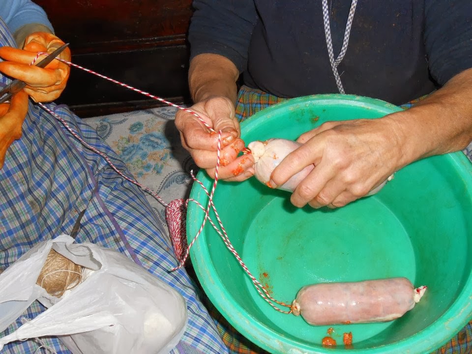 La vessie est livrée aux enfants pour qu'une fois que ventilateur, servira comme ballon à jouer les plus petits et les boyaux soient attachés par les deux extrémités et sans laisser qu'ils sont refroidis d'enlever les attachements de beurre, les nettoie, en leur donnant le retour par les deux côtés et en les coupant à mesure pour insérer les chorizos et les saucissons.
