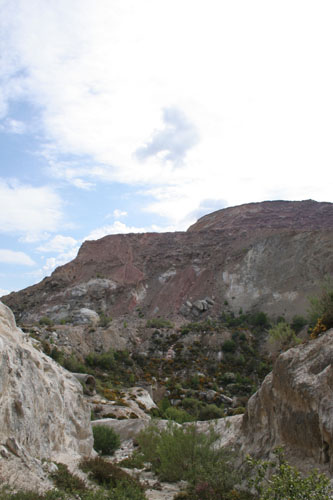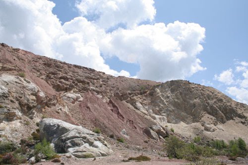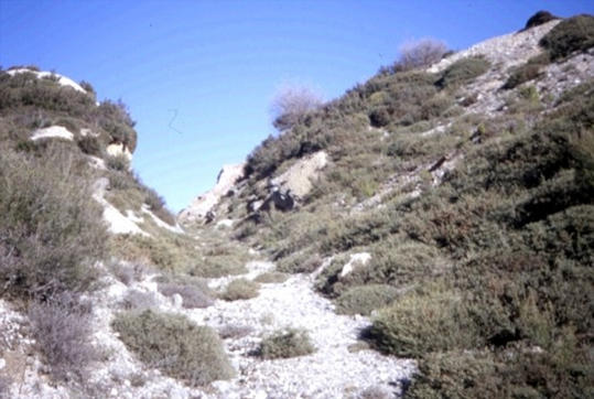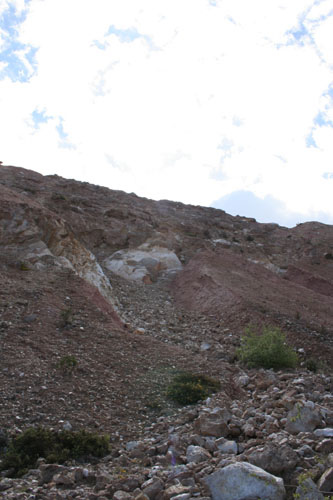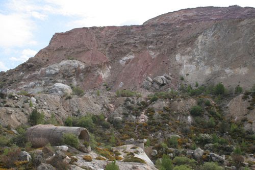 Vista general del talud dónde aparece el filón mineralizado