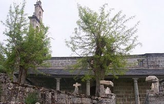 En este atrio se levanta ahora una elegante y sencilla sepultura moderna, propiedad de una familia heredera de una de las dos que, a principios del siglo XX, donaron los terrenos del actual cementerio, situado fuera del casco urbano del pueblo.